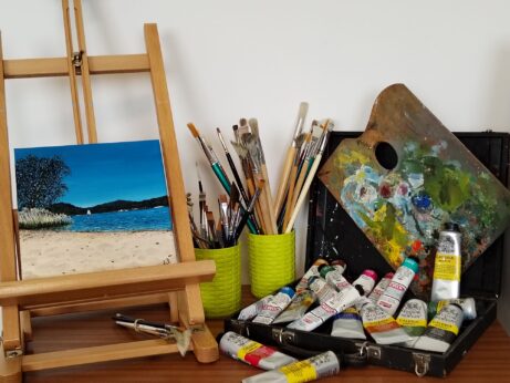 Maluji pouze doma, ve svém mini ateliéru, který se skládá z velkého stojanu, stolního stojánku a malého stolku, kam se mi vejde několik tub s barvami, sklenice s vodou a podložka na míchání barev. Zkoušela jsem malovat v plenéru, ale nemohu se tam soustředit. Nikdy mi nešlo, plně se venku soustředit na tvoření, ani na učení. Proto si vše nafotím a v klidu svého útočiště, často s hudební kulisou, tvořím. Stává se mi, že při tvoření zapomínám na čas…